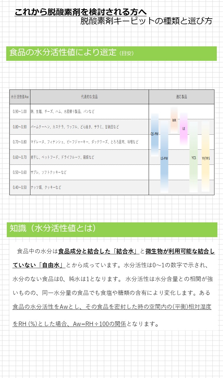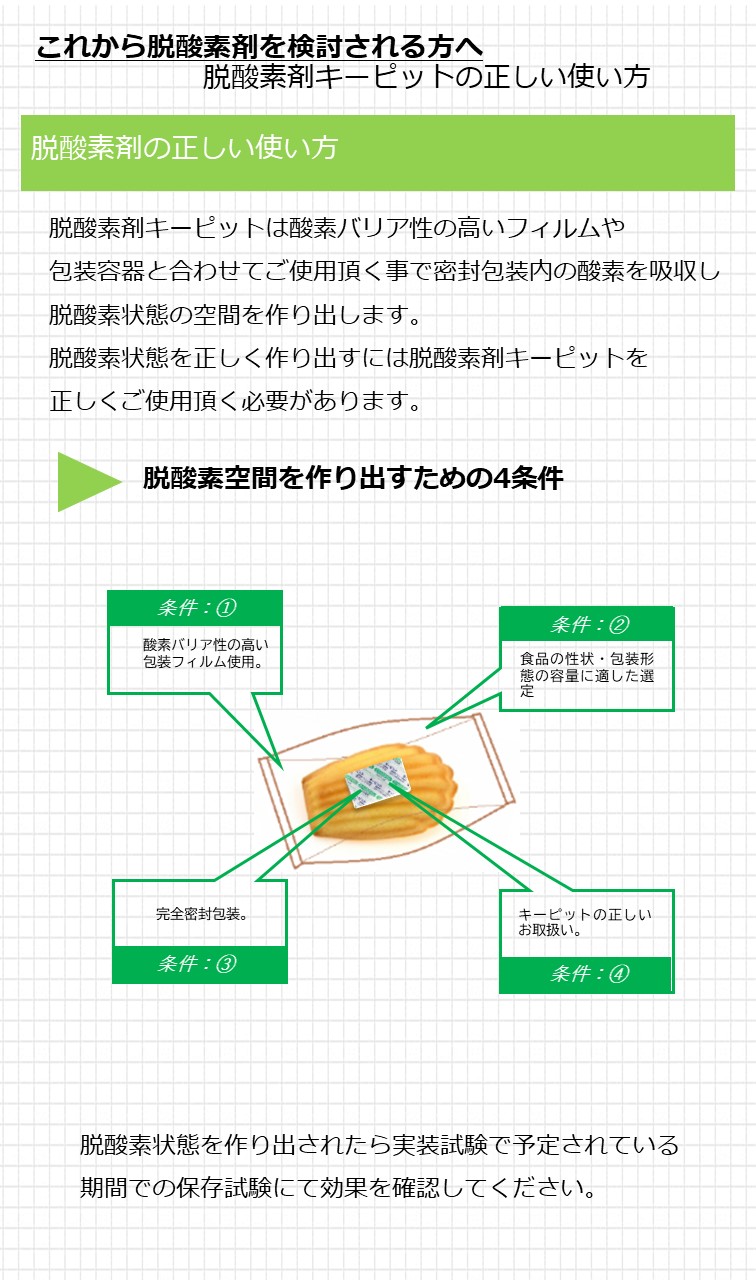 脱酸素剤使用でお困りの方へ ~脱酸素剤での解決~ 適した脱酸素剤キーピットの選び方