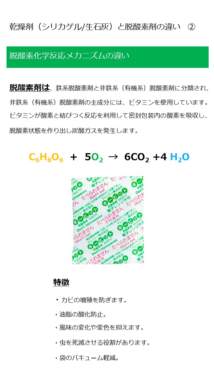 乾燥剤との併用に対応した脱酸素剤の仕様があります。