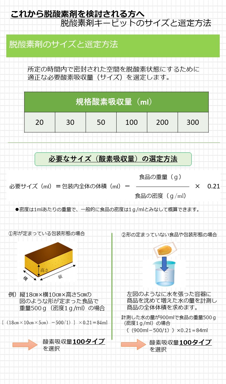 Q脱酸素剤のサイズと選定方法